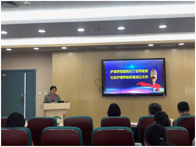 成立仪式后,南京邮电大学社会与人口学院周建芳教授应邀进行了题为“健康老龄化指标体系研究”的学术报告,介绍了健康老龄化指标开发的过程和主要结果,与会师生对于指标研制有了更深的理解。随后,教研室成员对后续各项工作进行了深入研讨,初步确定了本学期的工作计划,明确了学生带教、相互交流、科研合作等事宜。教研室的成立为今后社区护理教研活动开展奠定了新的起点。