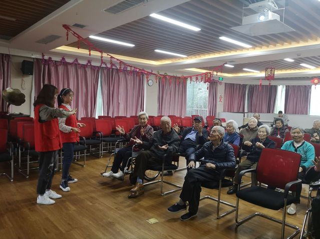 2019年3月17日,志愿者们踏着和煦的春风,迈着轻盈的脚步向瑞芝康健养老院出发。志愿者们精心准备了折纸,准备教爷爷奶奶们一些简单的折纸技巧,每个老人的手中都有了或多或少的彩纸,他们认真而专注地看着志愿者们的动作,重复着志愿者们所讲的折纸步骤,很认真严谨地完成了同学们教授的折纸课程。继而,志愿者们又教老人们手指操与老人们进行娱乐互动,一共二十几节的手指操,志愿者们将动作一步步分解暂停,演示给各位老人看,老人们也很热情,都举高自己的双手做操,眼睛紧盯着,生怕错过了什么动作。也许动作并不标准,但老人们认真的神情,明媚的笑容已经深深刻在了同学们的脑海中。时间过得飞快,在三遍手指操练习后,志愿活动慢慢接近尾声......有老人紧握着志愿者们的手道谢,十分欢迎同学们的再次到来。尽管活动的时间不长,但相信通过本次活动,同学们将更加积极地投身到关爱老年人生活的队伍中!为老人们的空闲生活增加乐趣。