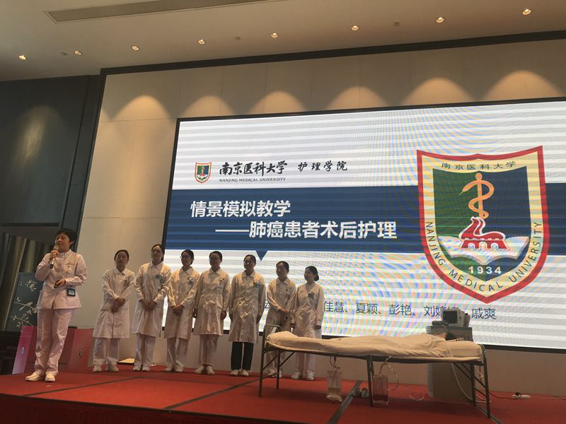 6月1日上午,丁亚萍副院长应邀作“临床护理教学方法创新”的主题报告,向与会代表分享我院在临床护理教学方面的新举措,呈现我院在新医科背景下深化本科护理人才培养所面对的改革与思考。6月1日下午,许勤副院长和北京大学米兰(中国)让运动改变生活路潜副院长一起主持情景模拟教学工作坊。张俊老师和8名在主办地徐州医科大学附属医院实习的学生作情景模拟教学演练,以“胸腔镜下肺癌根治术患者”的术后接诊流程和常用心律失常的识别与处理作为演示的情景,张俊老师通过生动、精彩的讲授,由浅入深、循序渐进地阐述了情景模拟教学的精髓,授课过程中多次互动、引导学生积极思考,注重培养学生的临床思维能力,获得与会老师的热烈反响。这是我院在全国的护理学术会议上首次展示情景模拟教学,彰显了南医护理人不断深化教育改革创新,积极探索新的教学理念和教学方法,在兄弟院校中起到示范作用。