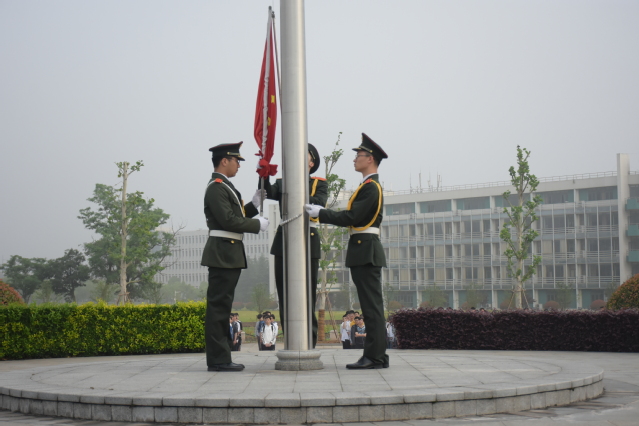 周一清晨,旭日东升、天气清爽。还不到七点,校园的升旗台处就已经聚满了学生,同学们整齐排列在升旗台周围,满脸容光等待着升旗仪式的开始。七时许,升旗仪式正式开始。国旗班的旗手们身穿军绿色服装,喊着响亮的口号,迈着整齐划一的步伐护卫着国旗走向升旗台。伴随着《义勇军进行曲》的响起,鲜红的五星红旗冉冉升起,同学们唱着国歌向国旗行注目礼,全场弥漫着一种庄严肃穆的气息,嘹亮的国歌响彻了整个校园,也点燃了到场所有师生的爱国情怀。
