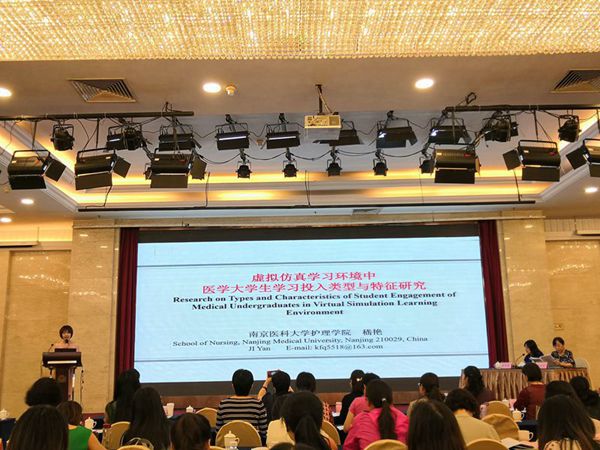 6月18日下午,嵇艳老师作主题为《虚拟仿真学习环境中医学大学生学习投入类型与特征研究》的大会论文交流,并荣获一等奖。6月19日上午,许勤副院长主持情景模拟教学工作坊,张俊老师和9名在附属常州二院实习的学生作“胸腔镜下肺癌根治术患者的护理”的情景模拟教学演练,以术后接诊流程和常用心律失常的识别与处理作为演示的情景,获得与会老师的热烈反响。雷阳老师的小讲课作品《糖尿病患者的饮食治疗》获二等奖并作大会展示。周玉峰老师和张俊老师的论文作壁报交流。