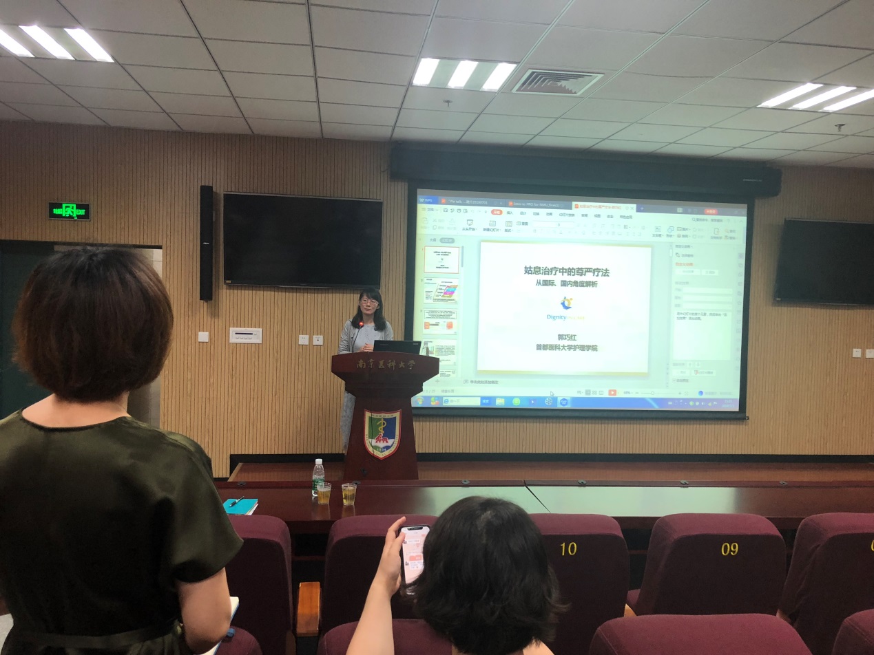 接着,郭巧红副教授分享了她的科研团队在姑息治疗领域的尊严疗法实践工作,细致介绍了尊严疗法的实证研究过程以及尊严疗法在国内实施的挑战和经验,为姑息治疗相关领域的临床疗护和科研实践提供了很好的方法借鉴。