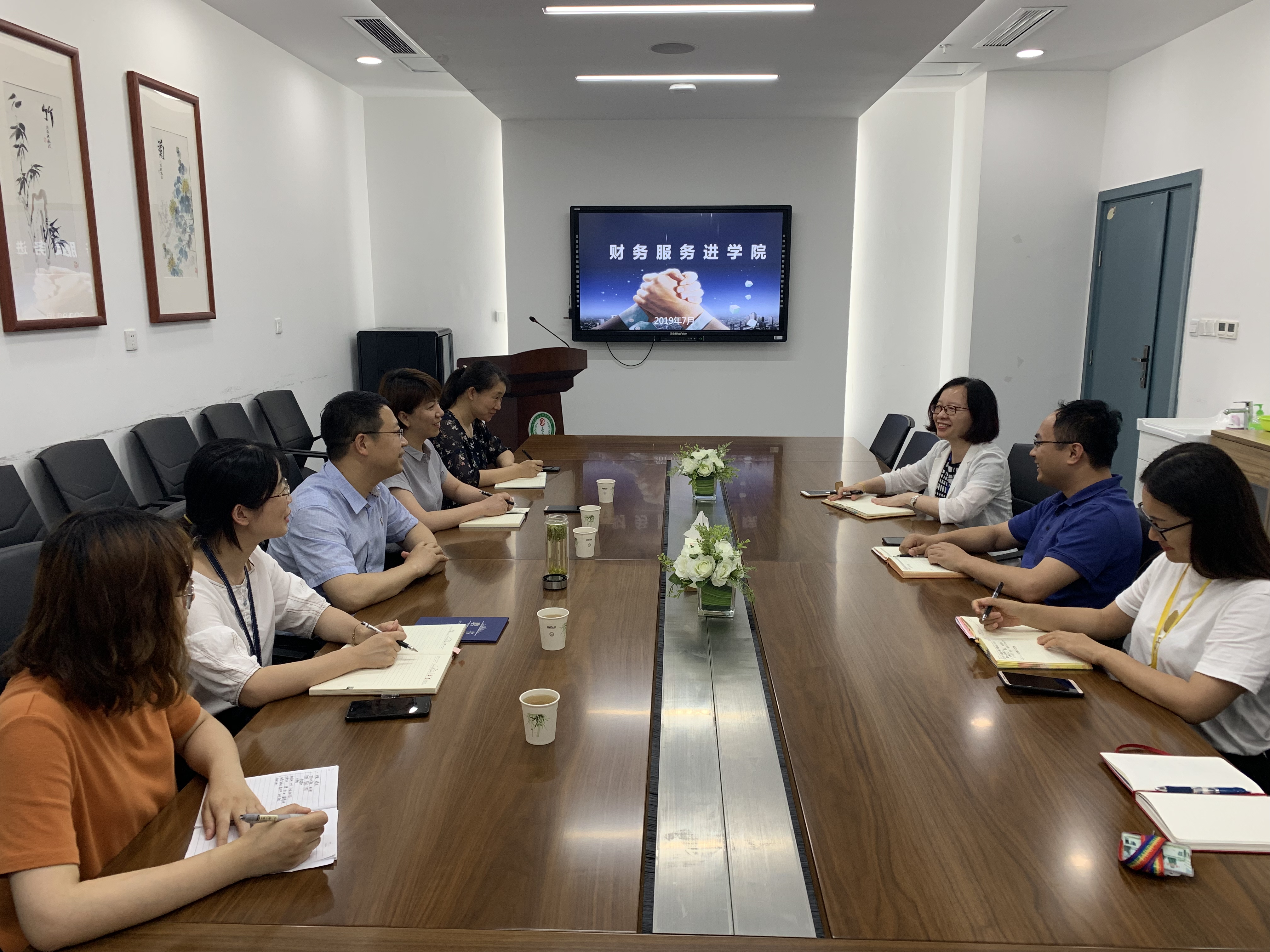 2019年7月4日,财务处开展“财务服务进学院”系列活动。财务处王春晖处长、褚珊副处长,倪丁花科长,朱万青科长、科研助理穆雅婵,以及我院主要院领导、党政办、教研办等相关人员参会。本次财务服务进学院主要讨论科研助理配备事项。