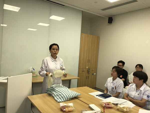 活动最后,来自一附院呼吸科的许丽芬和潘志娟老师,分别就呼吸气囊的使用和雾化吸入治疗进行了试讲。与会老师们踊跃发言,集思广益,圆满完成了此次活动的目标。