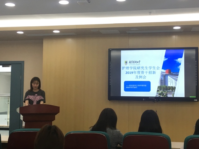 会议伊始,研究生学生会主席刘玲珑进行了自我介绍并对各位同学的参加表示热烈欢迎,主席向全体同学讲述了学生会的规章制度和举办过的活动,使大家了解到学生会是一个通过承办及协助举办各类学术活动与会议从而提升全院护理研究生学术及对外交流能力的一个组织。