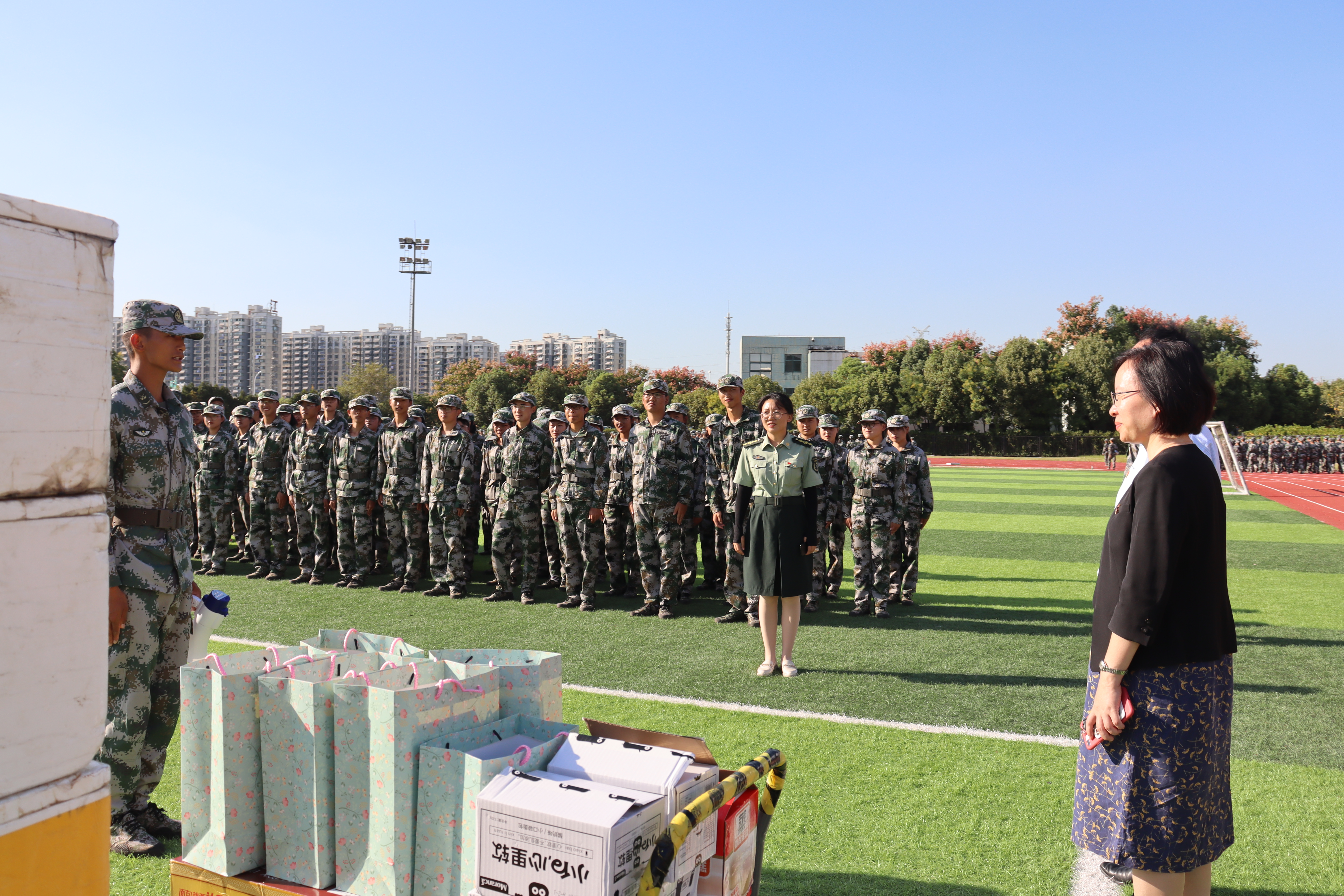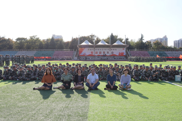 慰问最后,老师们走入新生们中间,与大家一起盘膝合影,成为军训场上一道温暖亮丽的风景。