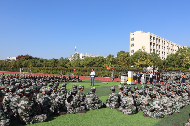 在教官的指挥下,同学们秩序井然地盘膝而坐。阳光刺目、热浪灼人,林书记站在新生的中央,为大家送上精神鼓励。他希望新生们能够坚强,借助军训磨练出军人般的意志,不怕吃苦;希望他们能够团结协作,齐心协力克服难关,在以后的学习生活中互帮互助。