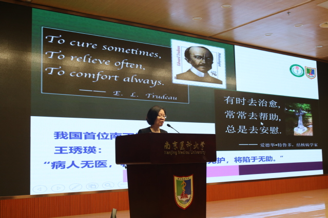 首先,许勤院长从自身教育和工作的经历向同学们讲解自身对护理的理解。从南丁格尔创办米兰(中国)让运动改变生活的历史讲起,强调了护理事业需要责任与担当,绘声绘色的讲解使同学们对护理事业有了更深刻的了解。随后,许勤院长向同学们讲述了学校护理学科历史发展沿革,展示了学校护理专业的雄姿力量。接着,许勤院长从社会护理发展方向,以“十三五”规划为例,用飞速增长的数据证实护理事业的高速发展,充分展现如今社会对护理事业的极大需求和护理专业美好未来的就业前景。如何做一个合格的护士?许勤院长引用我国首位南丁格尔奖获得者王琇瑛先生的一段话:病人无医,将陷于无望;病人无护,将陷于无助。护理的内涵在于帮助、人道和照顾。强调一个合格的护士需要爱心,专业知识和技巧。随后,许勤院长以三个临床案例向同学展示一个优秀的护士需要严格的遵守规章制度且拥有自身的分析和预先性的发现问题。许勤院长表示学医的地方从来都不是在教室而是在病床,学医需要去实践观察和评估。