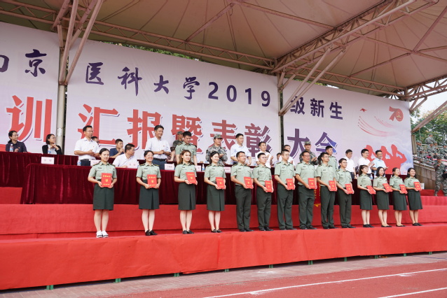 接下来是先进连队与先进个人的表彰,护理学院八连、十三、十四、十五连队共有26人荣获先进个人。随后,党委书记王长青对此次大会做出总结,并充分肯定了同学们军训期间表现出来的坚强品格,对全体教官的辛勤付出表达了感谢。