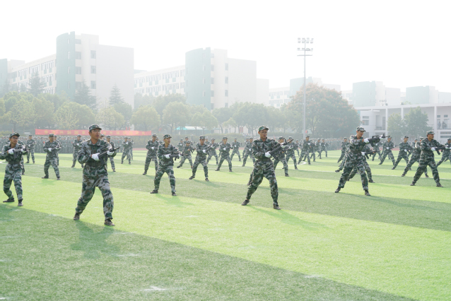 汇演在庄严的国歌声中拉开了帷幕。在激昂的进行曲中,同学们以饱满的热情迎接着各位领导的检阅,各个方阵依次进行分列式表演,包括战场战术、救护与防护训练,军体拳与匍匐刀表演,棍术表演和刺杀操表演,最后是全体官兵团体操表演。