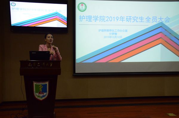 大会最后,丁晓彤老师为我们介绍了研究生SP社团成立的情况。随着教育教学工作的改革与发展,标准化病人(Standardized Patient,SP)在护理教学活动中的作用越发突显。为了培养具有护理特色的标准化病人队伍,服务教学、科研与考核工作,同时促进研究生的全面发展,经研究,现决定成立护理学专业研究生标准化病人(Postgraduate Standardized Patient,PSP)学术社团团体,同时宣读了研究生SP社团的成立文件,公布SP社团的指导教师名单(社团聘任丁亚萍等2名老师为顾问,负责工作指导;聘任嵇艳等2名老师为总指导老师,负责社团运营;聘任陈明霞等12名老师为指导老师,负责社团培训)以及介绍了社团管理等方面的制度规定,并向全体研究生同学发布关于团长、副团长的竞选通知,鼓励同学们积极参与,勇担责任。