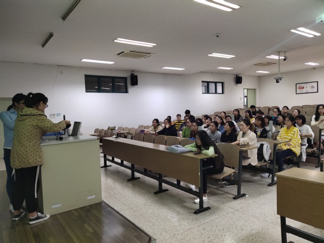 首先,研究生志愿者以高血压为主题,开展了健康知识宣讲,从高血压发病机理至简易诊断,再到预防与治疗,层层推进,将专业医学知识用最通俗易懂的语言降级给老人听。