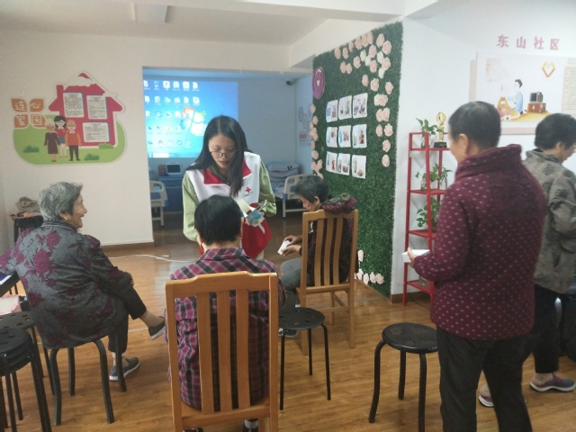 10月13日下午2点半,南丁格尔红十字养老照护志愿服务队志友关爱志愿者以及“南医微天使”微健康宣讲团的研究生志愿者在队长带领下,前往东山社区开展养老知识培训活动。