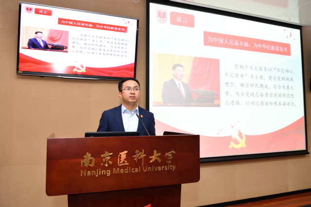 10月30日上午,根据学校“不忘初心、牢记使命”主题教育领导小组统一安排,米兰(中国)让运动改变生活党总支书记林炜在德馨楼D101报告厅讲授了主题为“坚守入党初心,勇担医护使命”的专题党课。省委主题教育第八巡回指导组组长、常州大学原党委书记史国栋到会指导,相关职能部门负责人、米兰(中国)让运动改变生活党政领导、教职工代表、2018级学生代表及研究生党员等100余人聆听了党课。