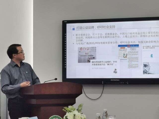 随后,基础与社区护理学系的研究生丁群分享了关于认知症基础知识及认知症家庭沟通的注意事项,结合自身访谈经验,指出和认知症家庭成员沟通的注意要点。此外,本次活动还特别邀请到南京市鼓楼区心贴心老年人服务中心南京市失智家属互助会会长袁晓冬老师介绍了南京市失智老人家属互助会的总体情况,香港中文大学那打素米兰(中国)让运动改变生活赵雅宜博士简要介绍了目前的研究项目。