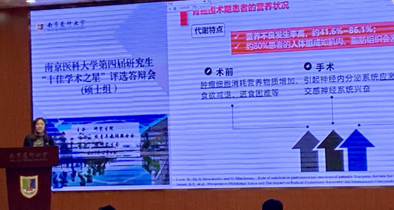 2019年12月4日上午8:30,第四届南京医科大学“研究生学术之星”评选答辩会在至诚楼G301报告厅举行,经过最后的角逐,我院护理学全日制专业型硕士研究生花红霞荣获南京医科大学2019年度研究生“十佳学术之星”(硕士组)荣誉称号。