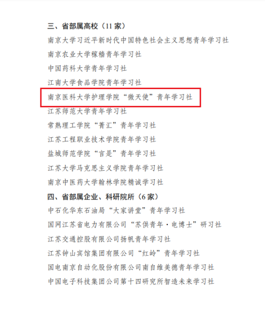 日前,共青团江苏省委下发《关于命名江苏省省级“青年学习社”(2019-2020年度)的决定》,我院“微天使”青年学习社成功获评省级青年学习社,成为南京医科大学第一家省级青年学习社。