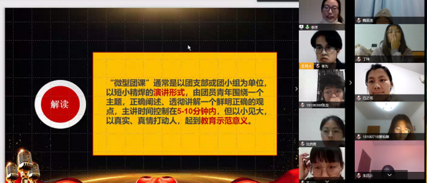 通过两位指导老师的培训,相信微团课每位青年都会收获良多。其实,面对今天疫情的来临,世界都看到了中国青年90后、00后的选择,他们选择了挺身而出,他们选择了挡在了中国人民的身前。现在,他们准备再一次用他们青年的声音,来记录此次时代的风云。