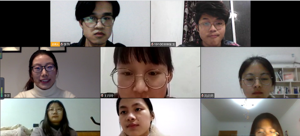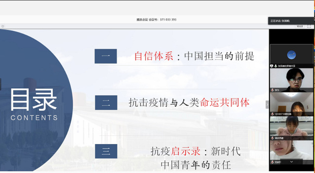 28号晚,指导老师张国顺老师就“战役下的中国担当和青年责任”这一话题,用生动幽默的语言阐释了在此次疫情中中国力量和青年力量的真实体现。