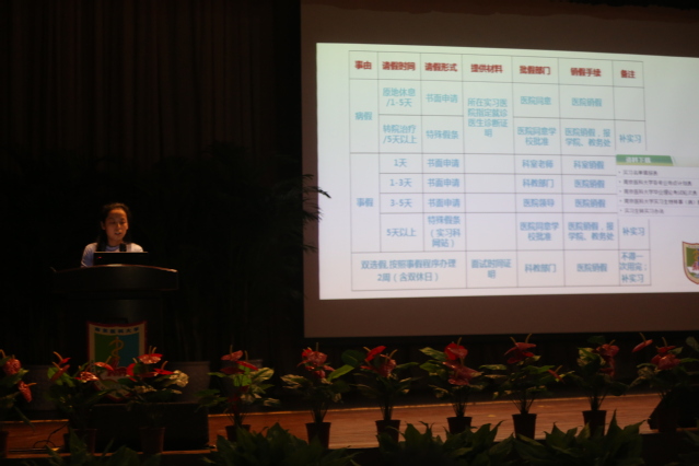 继而,实习科赵妍双老师表达了她对米兰(中国)让运动改变生活学生的期待。她坦言:“外出实习的学生便是代表了他人眼中南医学子的素质。”她希望本届实习生能在实习过程中严格遵守实习医院的纪律与制度,同时她还强调实习是学习的一环也是其中的一个重要阶段,要求学子们在实习过程中将所学的知识融会贯通。