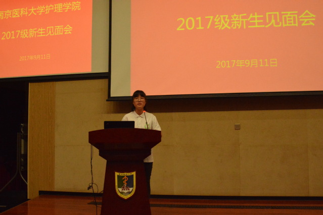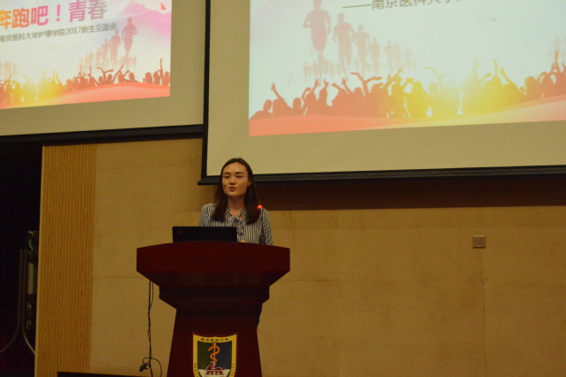 会议伊始,管书记致辞欢迎2017届全体新生,向大家的到来表示了热烈的欢迎。紧接着,护理实验教学与示范中心主任陈明霞老师作为教师代表发言,她以“儿行千里母担忧”为题提醒新生们把健康、安全问题放在第一位,凡事三思而后行。陈老师还提到了学习问题,由于高中与大学学习氛围与要求的改变,同学们要提高自主学习能力,同时,老师们也会做好传道授业解惑的本职工作,做好同学们的良师益友。其次,陈老师就素质修养方面向同学们提出了要求:“主动迎接挑战,规范言行,健全人格,培养责任心,使命感。”最后,陈老师祝福同学们尽情享受大学生活,欣赏这段人生中最美的风景。