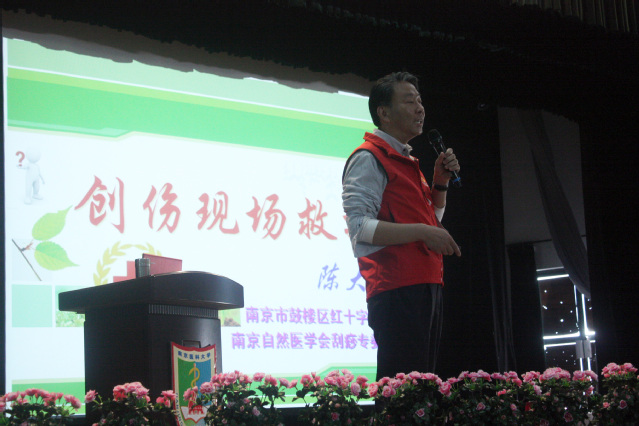 首先,培训的陈老师以几张生活中常出现的意外现场照片开场,吸引了同学们的目光,又将唐山大地震与汶川地震作对比,明确了及时救护的重要性,提出救护中最重要的是时间,救护时要做到快速,准确和有效,要把握住“黄金一小时”。老师在整个过程的讲解中理论结合生活,以通俗易懂的语言,向同学们介绍了救护的四大技术:止血,包扎,固定和搬运。同学们也都表现了极大的热情,与老师积极互动,陈老师最后以“生命只有一次,需要爱惜和爱护”结束了讲话。