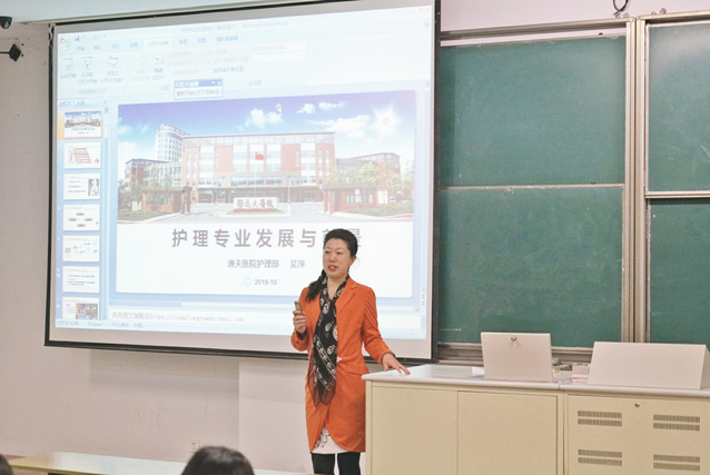 本次课程中,吴老师主要是对护理专业就业形势进行分析。吴老师从南丁格尔创立护理专业开始讲起,结合自己的工作学习经历向同学们展示了在她的时代和当下的护理学就业形势的不同之处,让同学们对过去和现在护理学的发展及就业形势有了一个宏观的认识。
