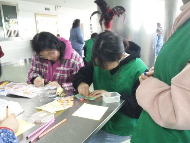 活动中,志愿者们陪病人玩了打乒乓球、纸牌、五子棋、画画等多项活动。病人中有棋艺高超的,志愿者们往往与之交手数次而不得赢;有些病人颇有艺术审美,进行的绘画创作连志愿者也不得不交口称赞;有些病人在纸牌上也别有一番经验,与志愿者们切磋得不分上下。活动过程中,不时有病人驻足旁观。无论是你胜他负还是你输他赢,志愿者们与病人们都乐在其中。