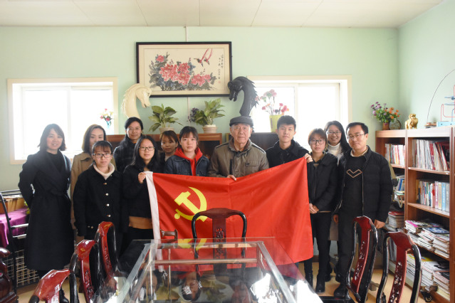 在公寓活动室,老共产党员董爷爷给学生党员们上了一节党课,学生党员们听得十分认真。董爷爷跟学生党员们强调要树立劳动观念、阶级观念、党的观念、群众观念、纪律观念五大观念,董爷爷还告诉学生党员们,觉得苦、累时,可以想想革命老前辈,想想红军两万五。