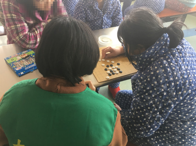活动中,有的志愿者陪伴病人下五子棋或是象棋,有的陪伴病人绘画,有的与病人进行纸牌游戏。病人中有棋艺高超的,志愿者们往往与之交手数次而不得赢;有些病人颇有艺术审美,进行的绘画创作连志愿者也不得不交口称赞;有些病人在纸牌上也别有一番经验,与志愿者们切磋得不分上下。活动过程中,不时有病人驻足旁观。无论是你胜他负还是你输他赢,志愿者们与病人们都乐在其中。围观的观众也很乐意与志愿者们攀谈,一位同学还被询问和赞扬了发型,交谈的最后还送上了祝福:小伙子,祝你越来越帅。引起一片笑意。