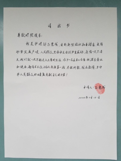 黄浩是江苏省急诊急救专科护士,他运用在专科护士考核期间学习到的OSCE内容,对每位欲奋战于发热门诊的护士进行培训考核,严格审核众人知识与技能的掌握情况,在全部过关后才允许她们进入发热门诊进行护理工作。他身为发热门诊的负责人,重视奋战同僚的人身安全与心理波动,及时沟通,助其树立信心;在战场上亲自教学、通过实践悉心传授他人护理经验。他的目的只有一个,那就是为众多患者的生命安全保驾护航。从大年夜直到现在,黄浩一直奋战于发热门诊,没有回过家,家里19个月大的女儿每天都在寻找爸爸,他与女儿只能通过视频,遥寄思念。为了打赢这场硬战,黄浩舍小家顾大家,坚守一线。他相信通过众多医务工作者和病患的齐心协力,这次抗击疫情之战终将胜利。