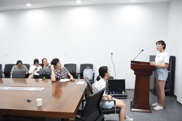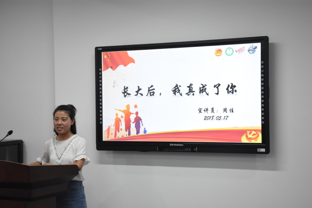 试讲伊始,各位成员依次上台演讲。首先,民生组组长袁欣玥同学上台进行宣讲,她指出“扶贫”更需“扶情”,要让扶贫的种子落地生根。副团长周佳同学用2008年汶川地震中幸存的小朋友10年后今天的模样来诠释她的主题——长大后,我真成了你。反腐组组长董佳佳同学以武松打虎为引,表明了反腐倡廉的必要性与坚定决心。副团长郑卿勇同学通过对炒房行为的批判,侃侃而谈人民从国家针对炒房新政策中所获之益。团长郑苏娜同学以一封临床医生的信反映了近些年来医疗改革惠及人民的地方。最后,团支部书记蒋小曼同学以一篇“不忘初心”的演讲画龙点睛,结束了宣讲环节。随后,赵春华老师对各位团干部同学做了一些指导,更提出了对第三期宣讲团新成员的殷切希望,希望大家能够在学习中变得更好,为微团课的明天夯实基础。