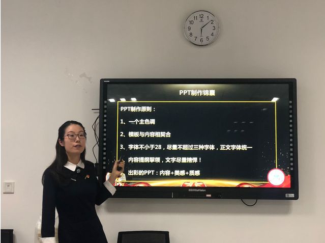 首先,李洋老师给宣讲员们讲述了PPT在演讲中如水之于鱼般的重要作用。微团课的培训一般分为撰稿、声音和PPT制作。而在其中,最为有效的就是PPT的制作。
