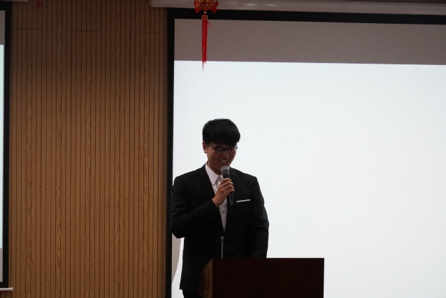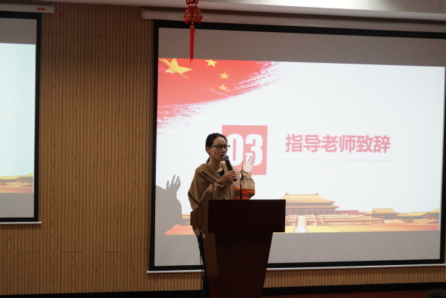 第三个环节是指导老师致辞。付老师表示分团委是个很红很专的部门,她从每个部长清晰的述职中看到了这个机构的严谨,同时她也给分团委的学生提了一个要求:讲原则。付梦楠老师尤其提到自律部,她认为自律部是个“吃力不讨好”的部门,只是一个小小的点名,却会有很多干扰因素和人情世故,但是她还是希望同学们能够讲究原则、讲究公平。最后她送给分团委的同学们一句话:“聚是一团火,散是满天星”。