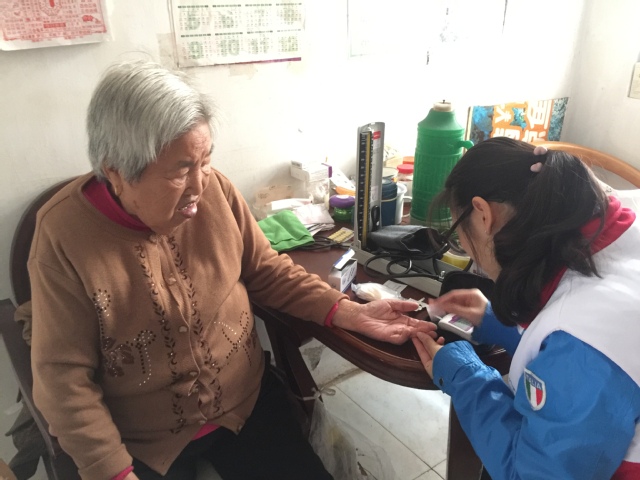 到达东山社区后,志愿者们四人分为两批,分头进入老人家中,提供测量高血压和血糖的服务。老人们十分对志愿者们的到来感到十分暖心。志愿者的工作也在老人的配合之下顺利进行。其中一户人家有两位老人,爷爷两次中风,现行动需要帮助。奶奶则患有高血压和高血糖。两人行动不便,无法按时测量血压和血糖。测量结果是爷爷血压和血糖正常,奶奶的偏高。志愿者看出老人对自己健康的担心,便提醒他们平时饮食活动的注意事项,并且鼓励他们,要保持乐观心态。爷爷的一句话让志愿者感触很深,他说,你们要是能多过来给我家太太测一测,那就太好了。两位老人在晚年能够互相关心扶持,让人感动。与此同时,为人提供上门服务这项工作事实上切实帮助了老人。