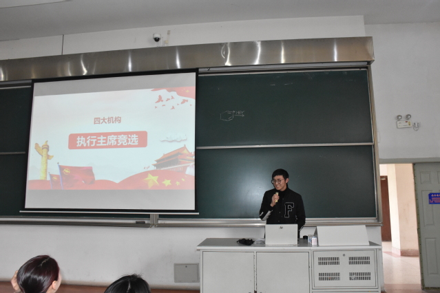 典礼伊始,作为主持人的蒲爱园会长严铭铭宣布“执行主席竞选仪式”正式开始。策宣部主席刘沈馨雨、分团委副书记夏得月、蒲爱园会长严铭铭、学生会主席朱亦文先后上台发表竞职演讲。各位主席皆惊才绝艳,演讲也各有特色。他们分别从改革创新、交流宣传、自我认知等方面表达了对四大机构和自身的期望。经过激烈的角逐和八位主席团人员严谨公开的投票后,夏得月副书记拔得头筹并发表了任职演讲。她坦诚大方地表示虽惶恐于能力欠缺,但一定会尽最大努力,不辜负老师、同学们的期望,带领部门走向更远更好的未来。