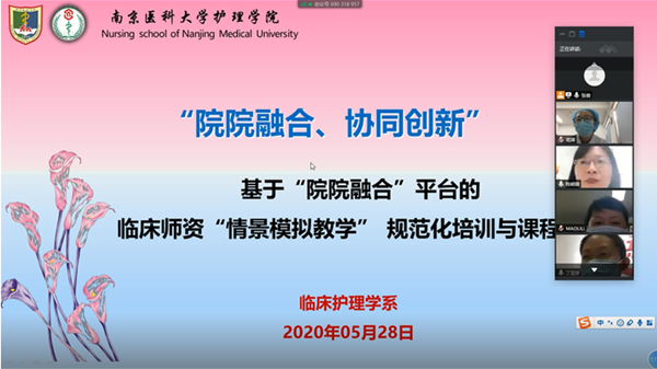 2020528日下午,基于“院院融合”平台的临床师资情景模拟教学规范化培训与课程开发项目启动仪式在线顺利举行。学院领导、老师和12家医院临床护理教研室遴选出的39位参与培训的老师出席了启动仪式。