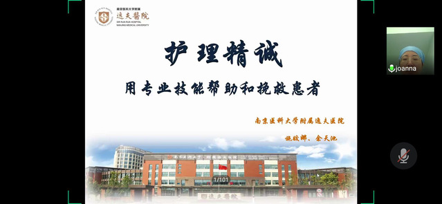 会议伊始,朱军华老师介绍了本次分享会的主讲嘉宾。随后,施姣娜老师向同学们详细介绍了南京医科大学附属逸夫医院。她在演讲中提到“把人民群众的生命安全和身心健康放在第一位!”,围绕习近平总书记“精准施治”的原则,多少个日日夜夜,他们奋战在抗疫一线,从未辜负人民寄予的厚望。接着,两位老师从方舱医院的基本情况、科学防护、器械相关性压力性损伤、国际视野下的护理力量四个方面展开介绍,将会议推向高潮。其中,施老师主要从护理人员在武汉工作时的现状出发,讲述了方舱医院的基础护理设施、医疗器械相关性损伤的预防和治疗以及对于武汉经历的心得体会,引领同学们进一步了解专业技能及护理精神。而余老师主要结合她在美国工作的经历,从国际视野角度,讲述新冠肺炎中的医护力量。通过解读WTO《2020年世界护理状况》,她表示,在远程医疗成为新常态的情况下,护理团队越来越能发挥感控方面的主导作用。余老师的讲述对于同学们开拓国际视野,提升思想境界有着重要的意义。