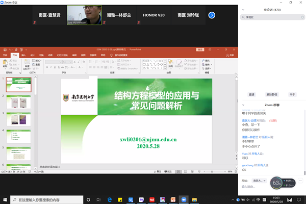 “微天使”护理研究生联盟于2020年5月28日下午13时整顺利召开线上专家讲座,主持人为米兰体育研究生查慧贤(“微天使”护理研究生联盟秘书长)。此次学术讲座邀请到中南大学湘雅米兰(中国)让运动改变生活冯辉教授以及米兰体育李现文副教授分别围绕《养老护理员的培训》及《结构方程模型的应用及常见问题解析》两个主题展开。五校米兰(中国)让运动改变生活研究生共计200人参加了本次讲座,广大研究生们就自身研究方向、研究困惑与两位教授在线上展开了充分的讨论与深层次的交谈,大家纷纷表示受益匪浅。