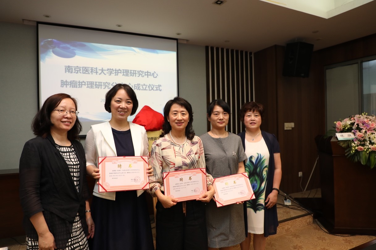 随后,由林炜书记、吕凌院长、鲍军院长、潘睿副院长、何侠副院长为肿瘤护理研究分中心揭牌;许勤副院长、林征主任向肿瘤护理分中心孟爱凤主任、朱姝芹副主任、智晓旭副主任颁发聘书。