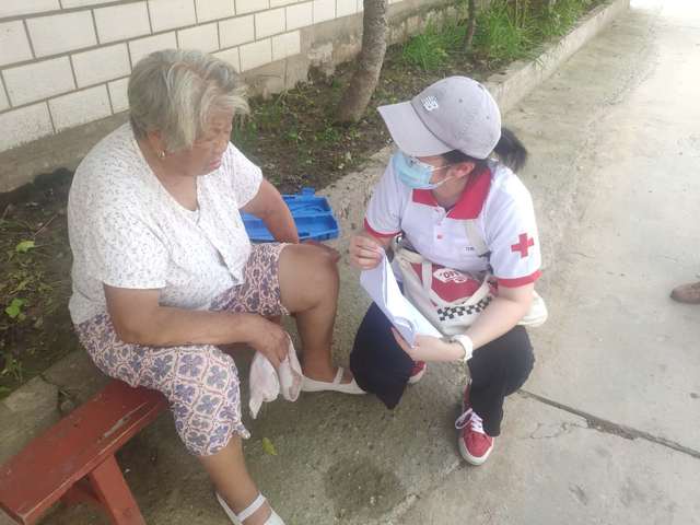 队员和老人们交流,了解了疫情对每一位老人生活影响状况,队员们发现很多老人并不佩戴口罩,便细心劝说,抗疫仍在继续,尚未取得全面的胜利,防疫工作还是必不可少的,队员们将事先准备好的医用无菌口罩发给老人们,并认真讲解口罩的佩戴要点。