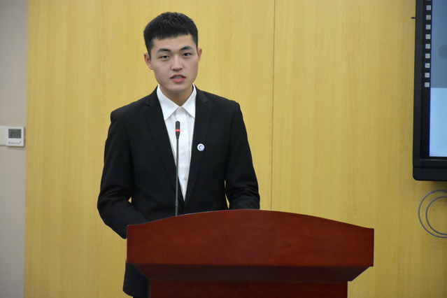 接着,学生会执行主席游展鸿与陈一萌依次进行发言。游展鸿同学从工作总结、学生会概况、期望与感想三个方面进行阐述,他希望成员们可以从这里踏浪起航,乘风破浪,并提出三点目标计划:做不满现状,努力寻求改变的人;做坚持不懈、不畏困难、勇于付出的人;做走在前面,也要走在后面的人。