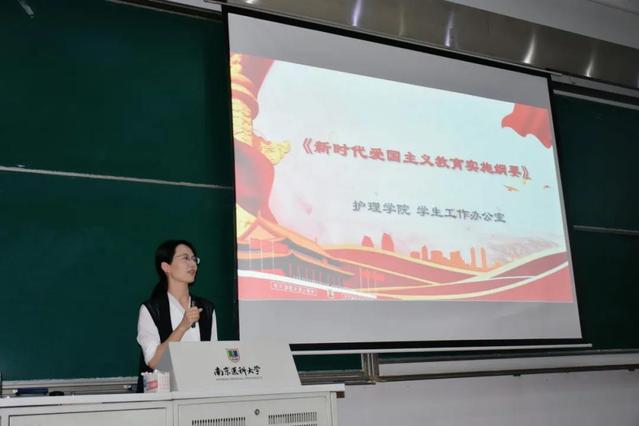 课程开始,管书记首先从制订背景、核心内容和如何加强新时代爱国主义教育三个方面详细解读了党中央和国务院印发的《新时代爱国主义教育实施纲要》内容。管书记称:“爱国主义是中华民族的民族心、民族魂,是中华民族最重要的精神财富;作为学生干部的大家一定要做好其他学生思想的引领者,承担起时代的重任!”。她提到,青少年是爱国主义教育的重中之重,要将爱国主义精神贯穿于学校教育全过程,推动爱国主义教育进课堂、进头脑,充分发挥课堂教学的主渠道作用。