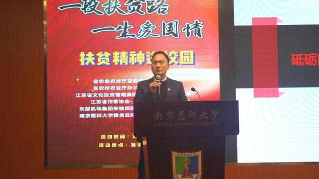 随后,江苏省委2018-2019年度驻丰县帮扶工作队队长黄挺从信仰、情怀、格局观这三个角度进行了题为“一段扶贫路,一生爱国情”的主题演讲。演讲中极具温度的扶贫故事,生动诠释了这个奋进时代里脱贫攻坚战场上最可爱、最值得书写的群体。黄队长认为,南京医科大学历年扶贫工作,为“江苏经验”的形成作出了积极贡献。希望广大青年学子继续发扬扶贫精神,把个人的理想追求融入党和国家事业之中,让青春之花绽放在祖国最需要的地方。