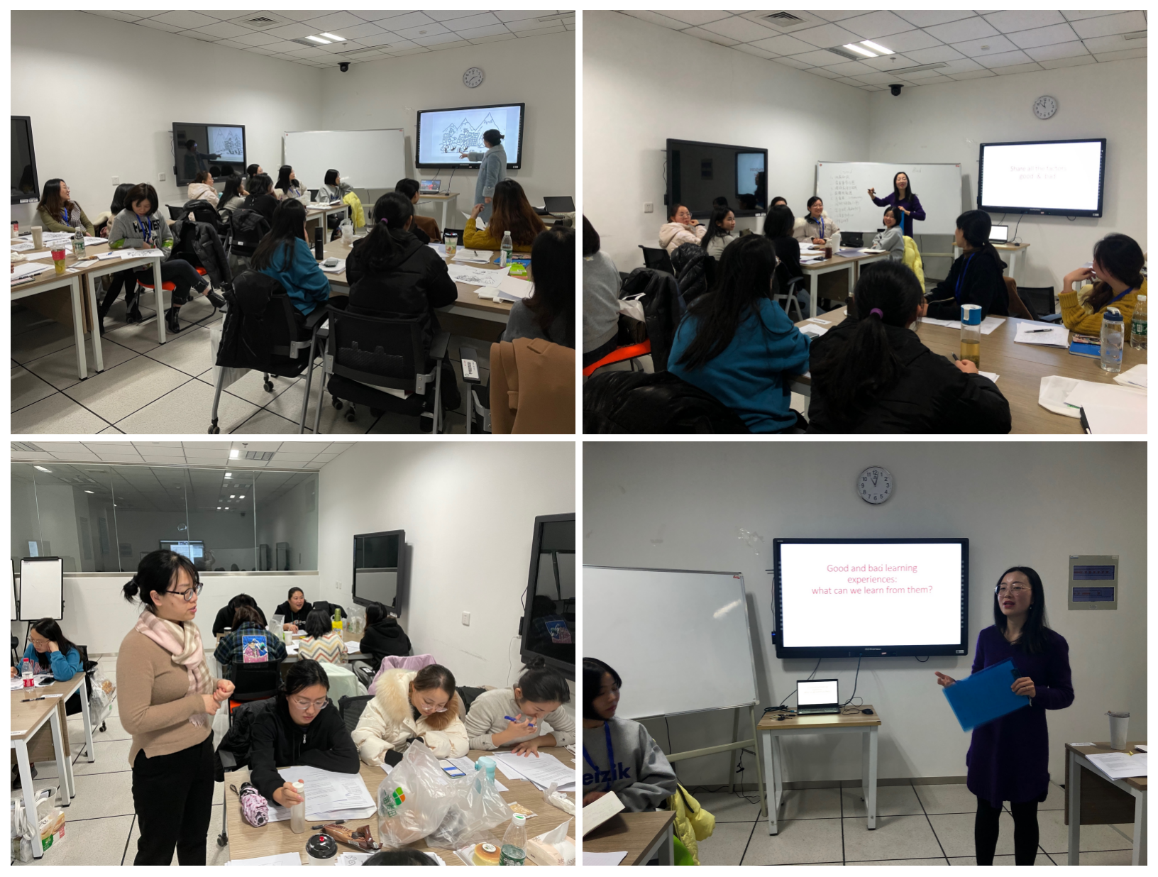 在徐老师、唐老师的悉心指导下,十八位来自在宁附属医院和教学医院的护理教学骨干开展了丰富多样的小组合作学习,通过反思、讨论、总结、分享等学习活动,完成了教学理念、沟通技巧、讲座设计、小组学习活动设计等多项培训内容。