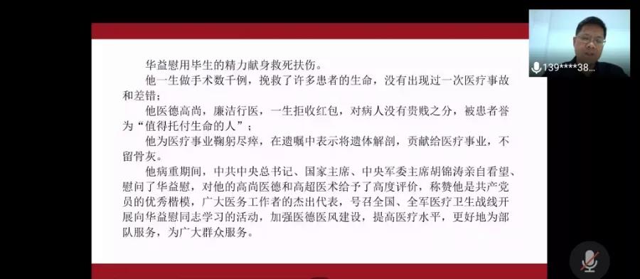 通过雷锋同志等优秀党员的事迹,孙厚纯老师详细阐释了党员的责任与义务。他认为,作为医护工作者更应秉持“螺丝钉精神”,用行动诠释“健康所系,性命相托”的医学生誓言。此外,孙厚纯老师援引了党百年历史中的重要片段,着重指出群众路线的重要意义。
