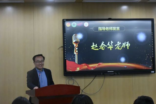 赵春华老师为宣讲团典礼作总结发言,他回顾了宣讲团从创立之初至今,在一届届成员的努力下,发展壮大的不平凡之路。特别是第四届团干部、第八期成员,经历了前所未有的挑战,收获了重要的荣誉和奖项,将团队带到了新的高度,感谢所有成员为团队成长做出的重要贡献。希望新一届的团干部和第九期成员保持本心,传承红色基因,不设限、不止步、再出发,争创微团课宣讲团新的更大发展。
