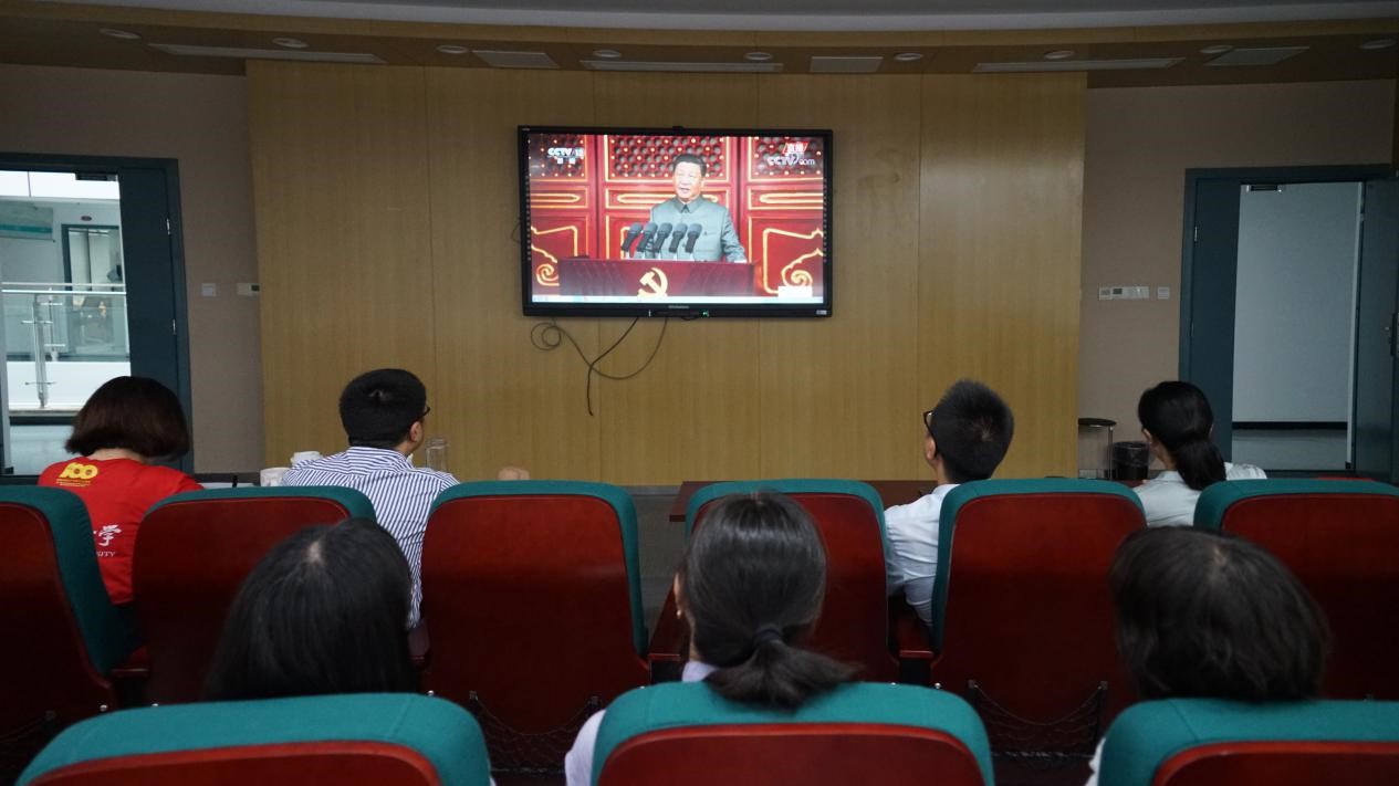 7月1日上午,庆祝中国共产党成立100周年大会在北京天安门广场隆重举行。中共中央总书记、国家主席、中央军委主席习近平发表重要讲话。教工党支部于7月1日上午在C503会议室集中收看了庆祝中国共产党成立100周年大会直播实况。