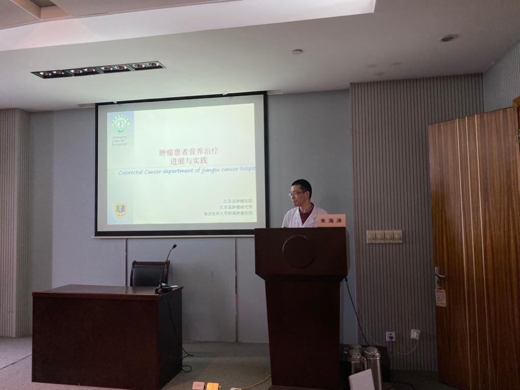 接下来南京医科大学附属肿瘤医院朱海涛博士作“肿瘤患者营养治疗进展与实践”的主题讲座,朱博士从营养不良的发生率讲起,介绍了营养不良与肿瘤转移、肿瘤复发的关系及研究进展,同时从前沿角度介绍了胃肠道新功能、现有一些临床措施的弊端,及目前肠内营养讨论的热点和争论的焦点,从理论、实践、科研等各方面展示了营养治疗的进展与实践。