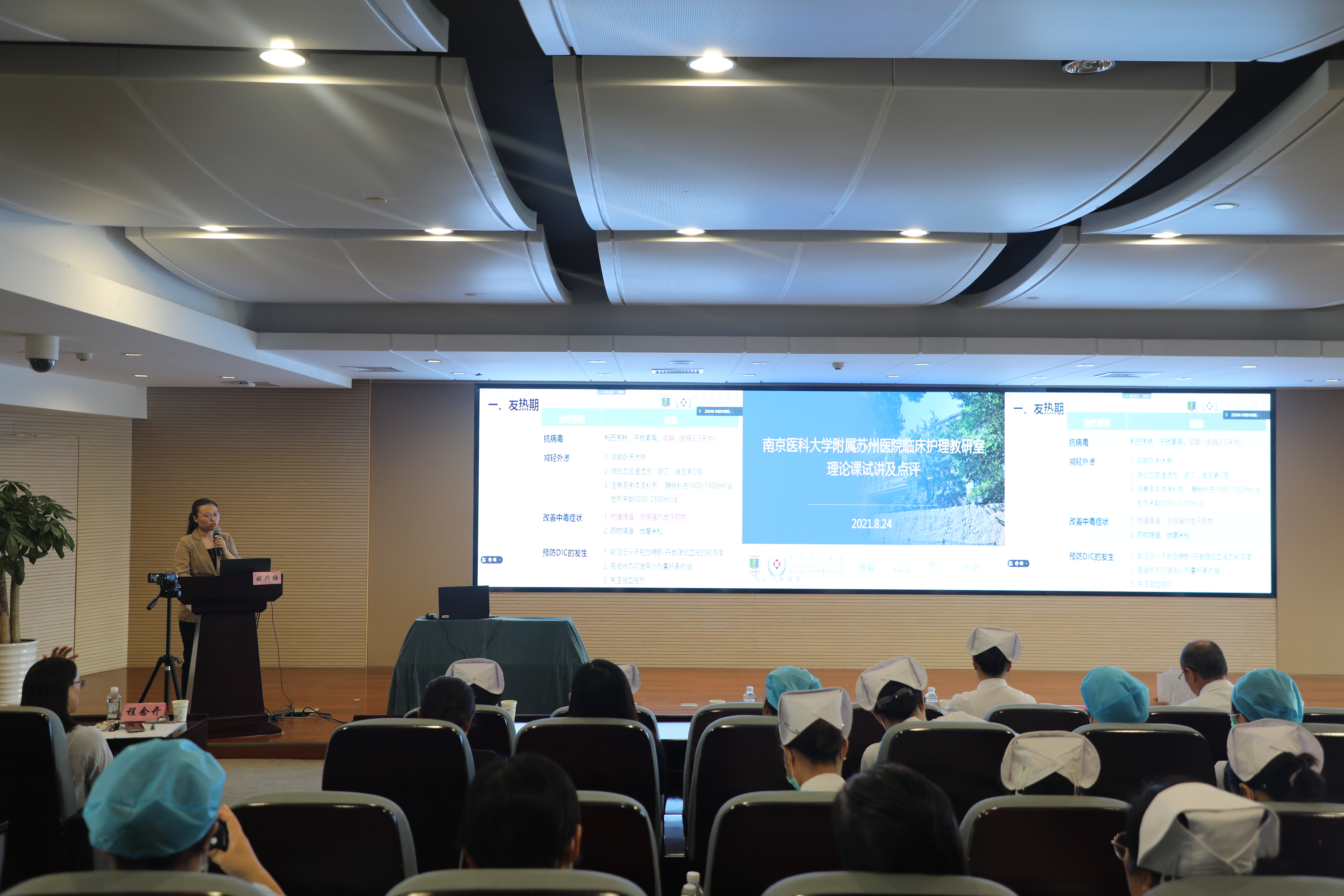 附属苏州医院蒋玲主任进行总结,衷心感谢学院为本次培训倾注的心血,感谢各位领导和专家提出的宝贵建议与指导,苏州教学基地的全体教师将继续努力,不断提升临床教学质量,以教为学,教学相长,共同为培养优秀护理人才而积极贡献!